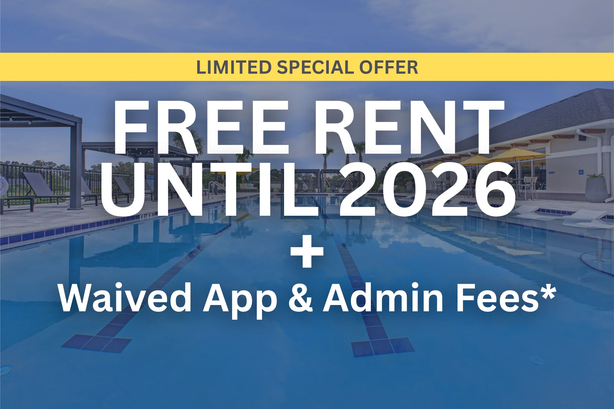 SPECIAL OFFER: FREE RENT UNTIL 2026 + Credited Admin Fees($250 savings!)*